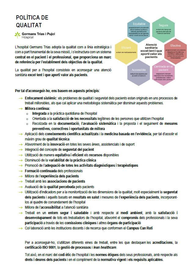 Política de Qualitat de l'Hospital Germans Trias